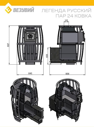 Печи «Легенда Русский пар 24» отличаются наличием закрытой каменки, в которой камни прогреваются до температуры 600 °С, что позволяет создать в парилке наиболее благоприятный микроклимат, не пересушивая и не перегревая воздух. Вода подается в центральную самую горячую часть закрытой каменки через воронку, дверь закрытой каменки при этом должна быть приоткрыта для поступления мелкодисперсного пара в парное отделение. Все элементы топки отлиты из жаропрочного чугуна и соединены между собой с помощью болтового соединения через термостойкий шнур и герметик, а закрытая каменка изготовлена из жаростойкой высоколегированной 4 мм нержавеющей стали. Вес камней в закрытой каменке — 25-40 кг.