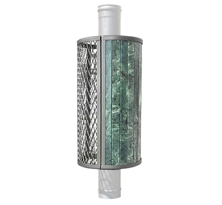 Сетка-каменка защищает от излучения, уменьшая поверхность открытой трубы, снимает тепло с ее стенок и направляет его на прогрев камней.