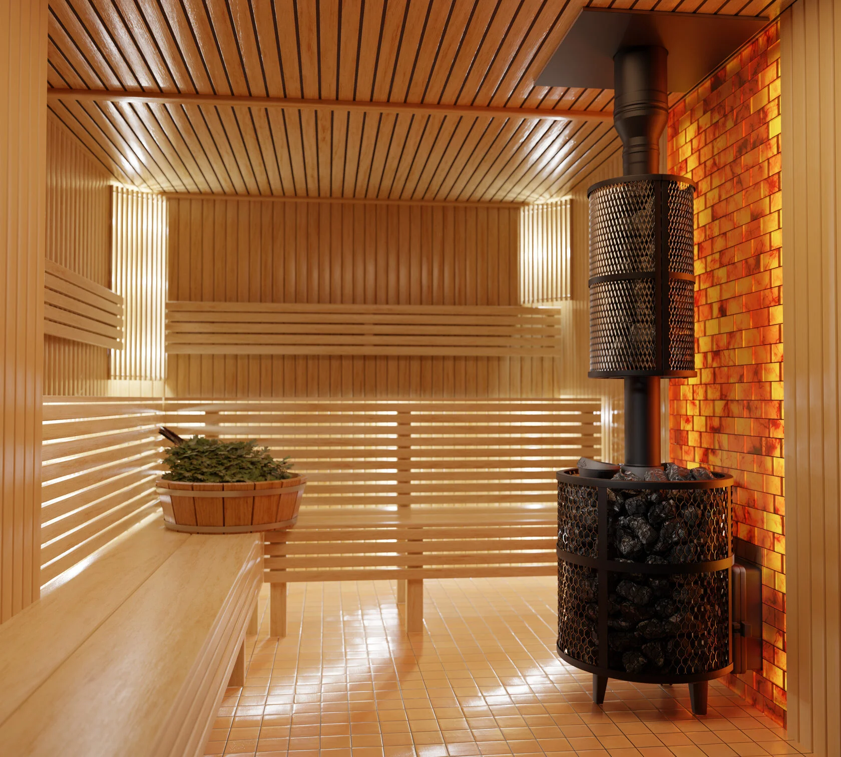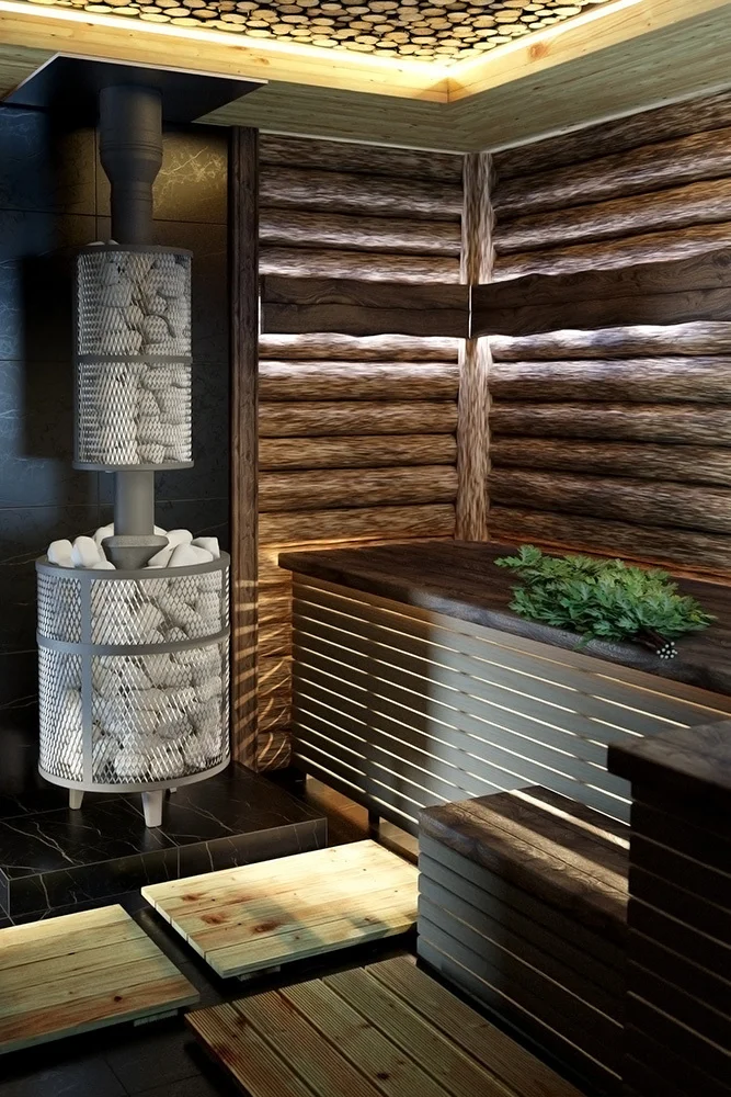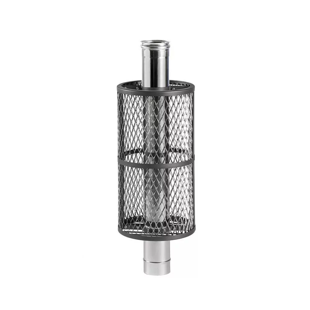 Сетка для камней - это по сути огорождение из металла вокруг первой трубы дымохода. За счет укладки дополнительных камней существенно увеличивается теплоемкость печи.