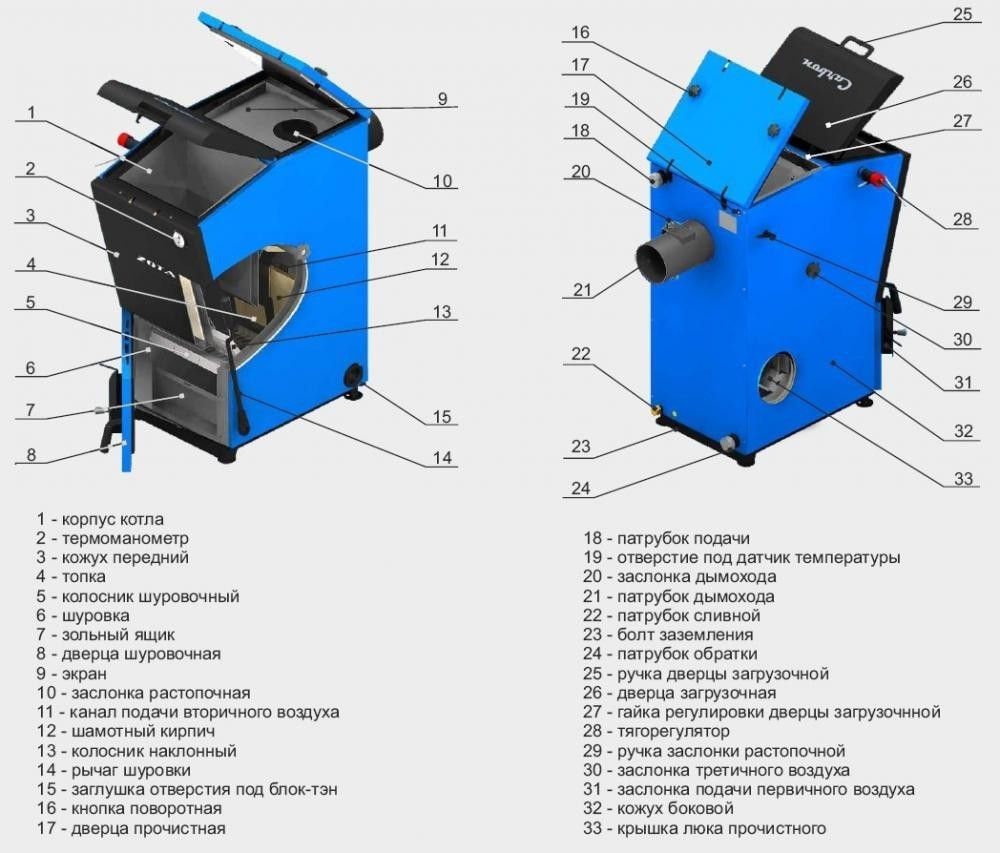 - изготовленный из высококачественной котельной стали сварной корпус;